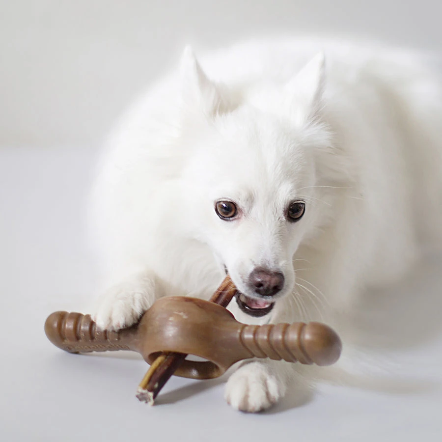 Benebones should be enjoyed but not eaten. While very durable, Benebones are not a fit for very aggressive chewers who could damage the product or damage their teeth. Every dog plays differently, and since not all toys are created equal, itβs always best to keep a close watch on your pup in case things get ruff. Supervised play will help toys last longer and most importantly keep your pal safe. No dog toy is truly indestructible, so always remove the chew from playtime if pieces begin to break off.