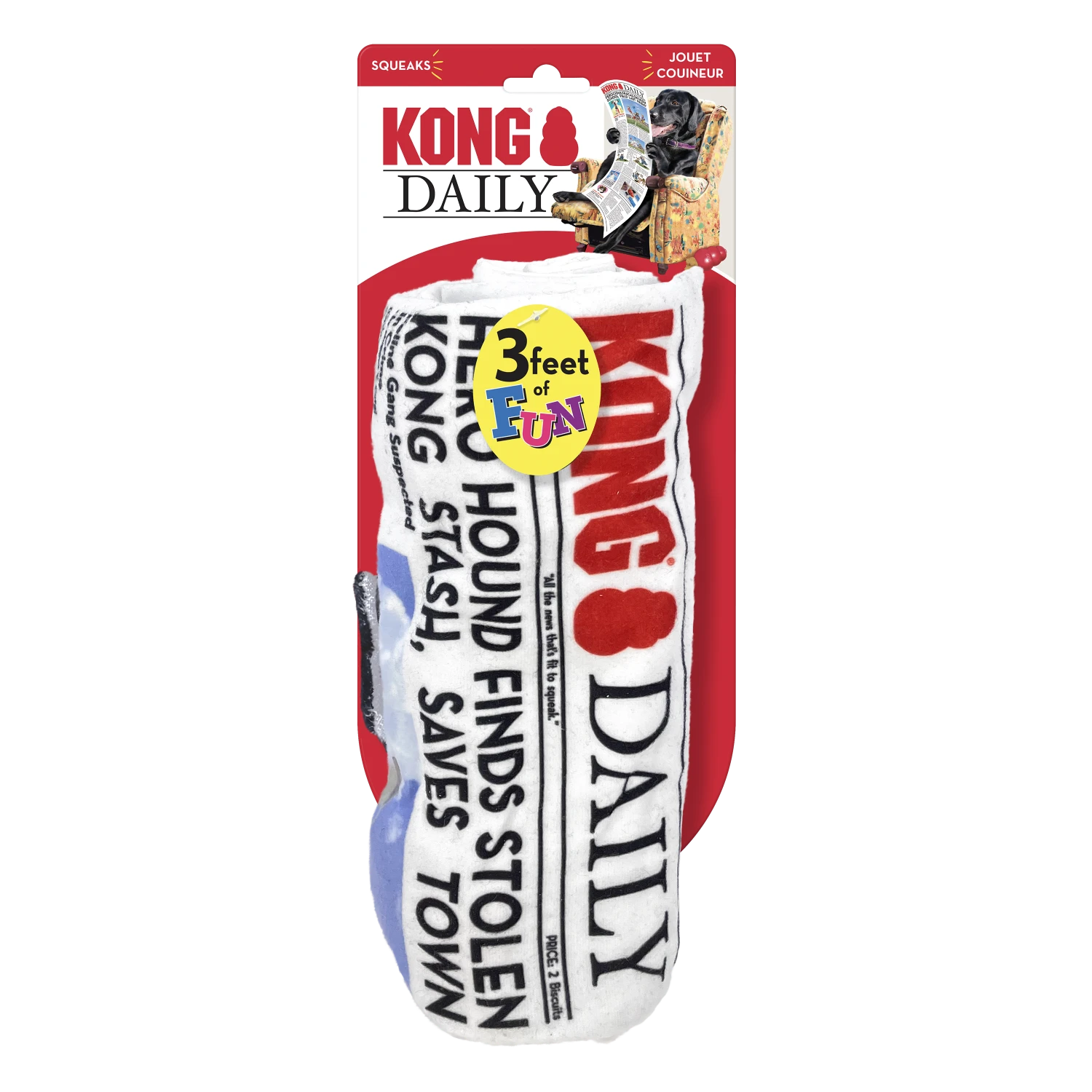 KONG Daily delivers a 3-foot long special edition that stays closed with a hook-and-loop strap to make an ideal tug toy and unfurls for instinct-satisfying thrashing fun. This journal of joy delivers a doggy digest with 6 squeakers that prolong play and a soft, baby plush side ideal for napping after catching up with the headlines.