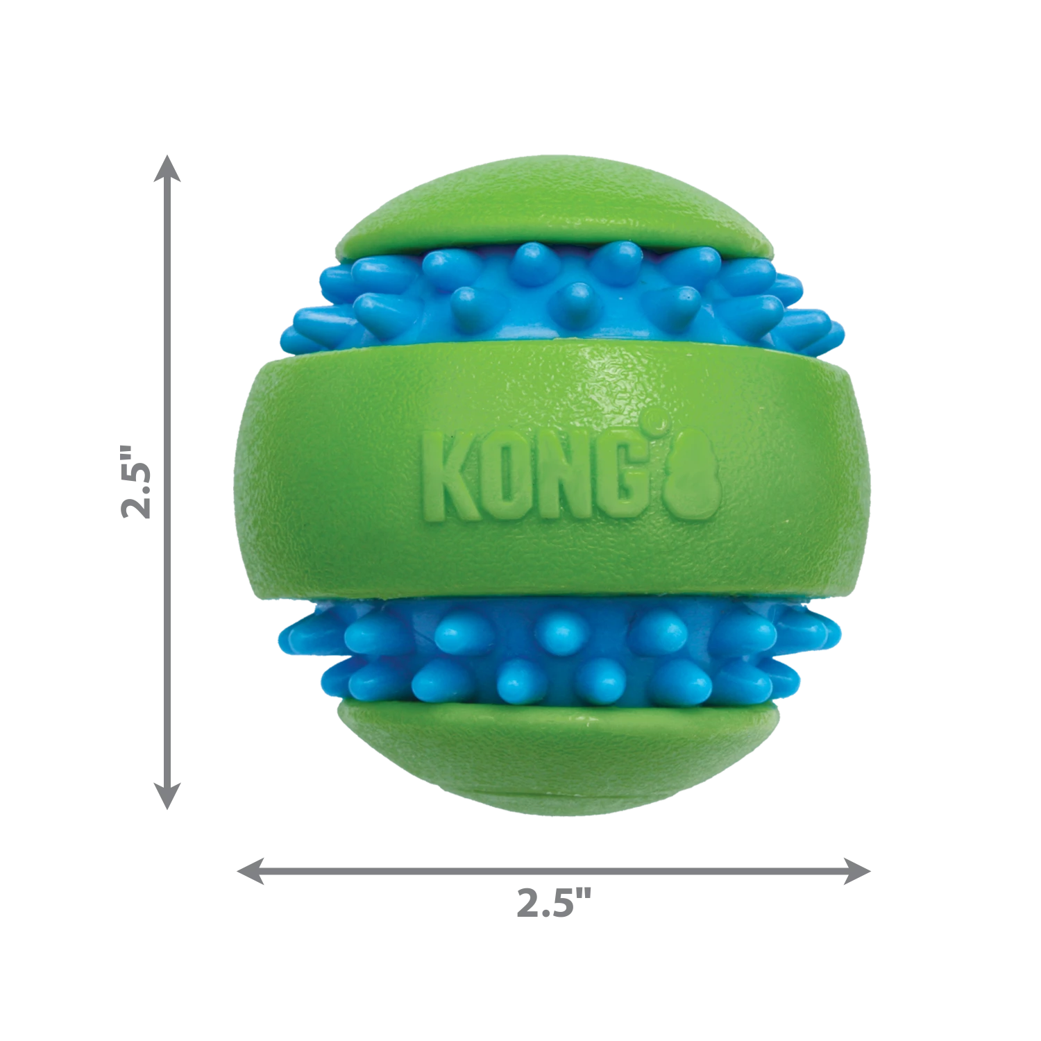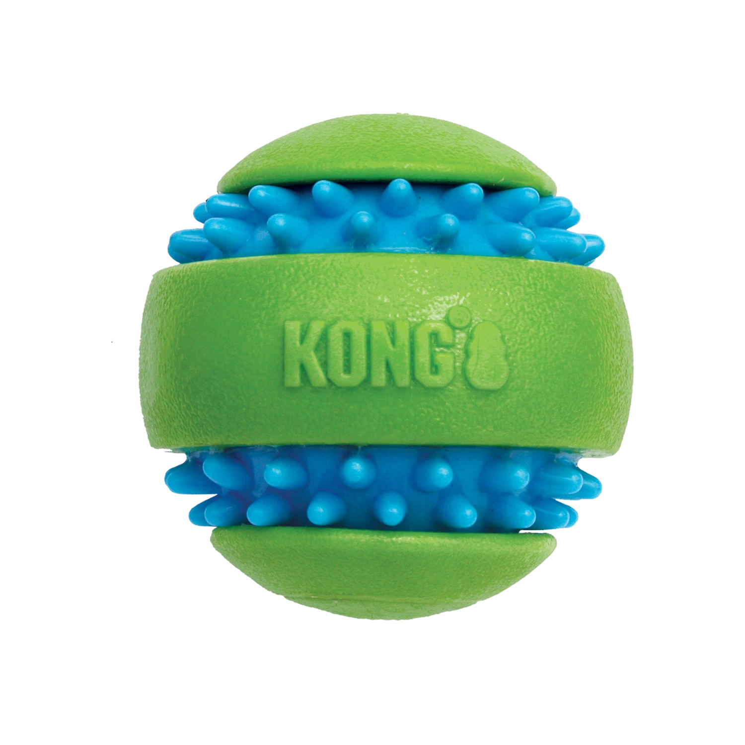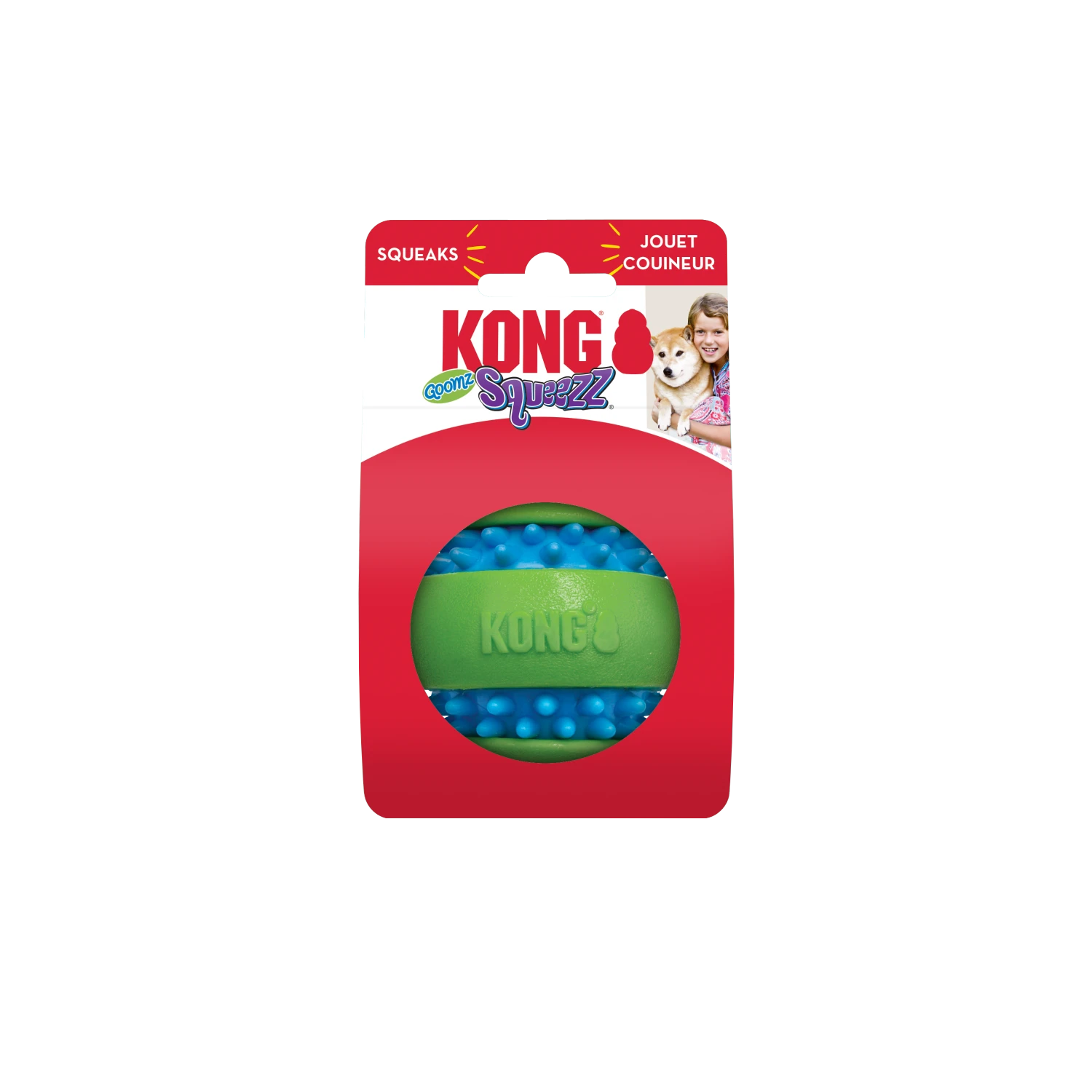 KONG Goomz ballโs enticing raised nubs massage teeth and gums while rewarding appropriate chewing behavior. Mixed textures and a durable material encourage on-going fun while satisfying natural instincts. The squeaker continues to extend playtime for indoor and outdoor sessions of interactive engagement.
