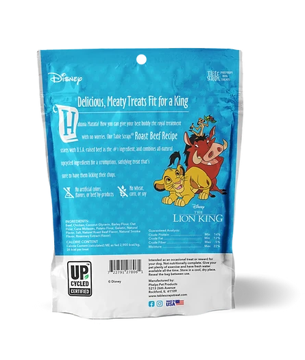 Hakuna Matata! Now you can give your best buddy the royal treatment with no worries. Our Table Scraps Roast Beef Recipe starts with U.S.A-raised beef as the #1 ingredient and combines all-natural upcycled fruits and veggies for a scrumptious, satisfying treat that’s sure to have them licking their chops.
