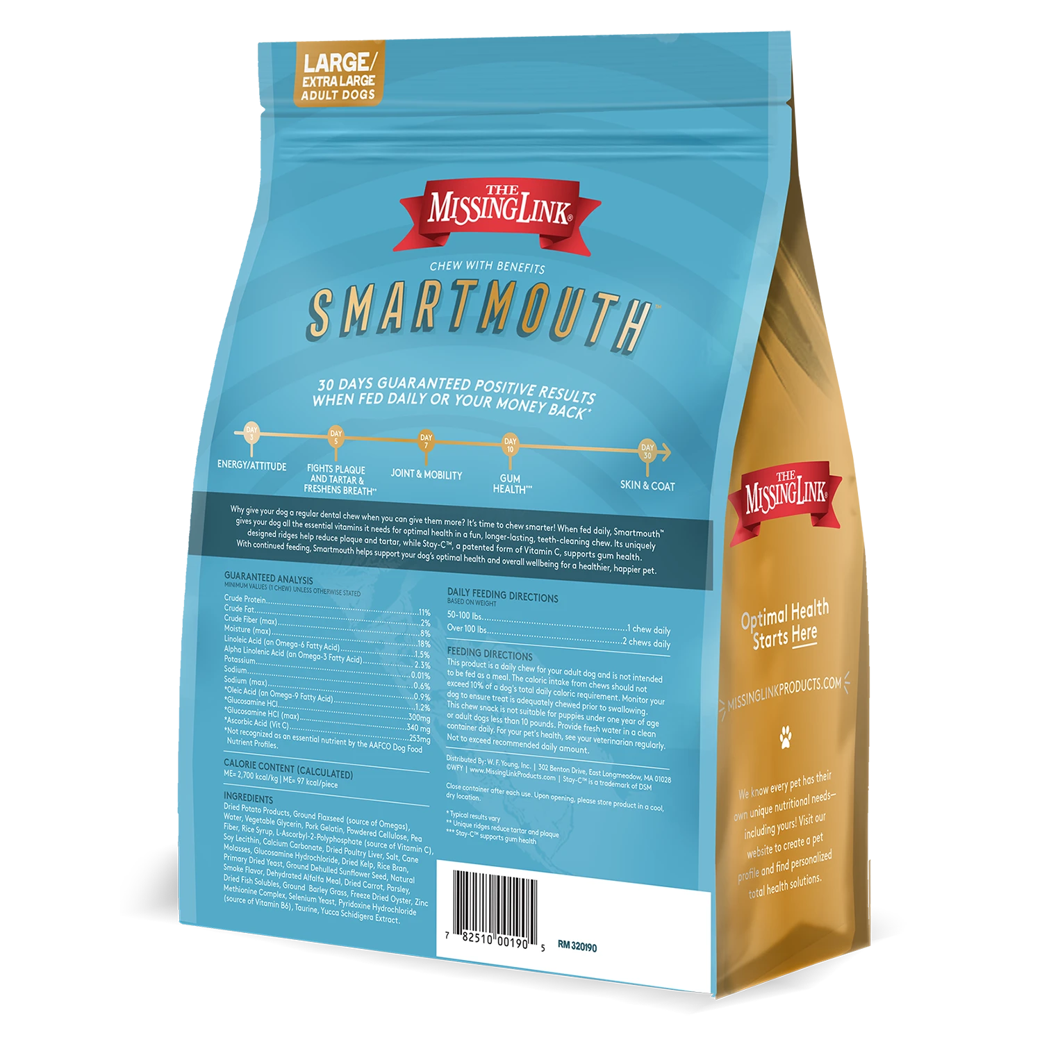 Why give dogs regular chews when you can give them more? Say goodbye to single- purpose dental chews and say hello to Smartmouth—a long-lasting, multi-tasking dental chew that cleans teeth, freshens breath, supports joint health and so much more. Your pet will love them. Long-lasting and designed for Large to Extra Large powerful chewers, for dogs weighing 50 – 100+ pounds.