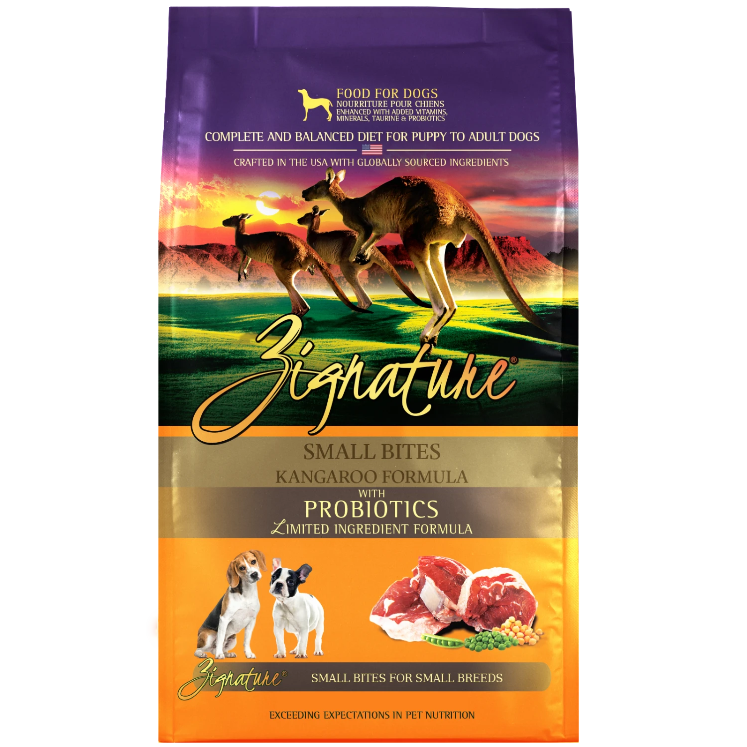 For our smaller pups, try Zignature Small Bites! Zignature Small Bites follows our same limited-ingredient, meat-first philosophy—just in smaller sized bites. Our Kangaroo Formula Small Bites are packed with lean Kangaroo protein which is rich in nutrients and has twice the amount of Vitamin B12 than any other meat protein. Then, we top that off with other healthy and wholesome ingredients to provide your pup with a tasty and well-balanced diet.